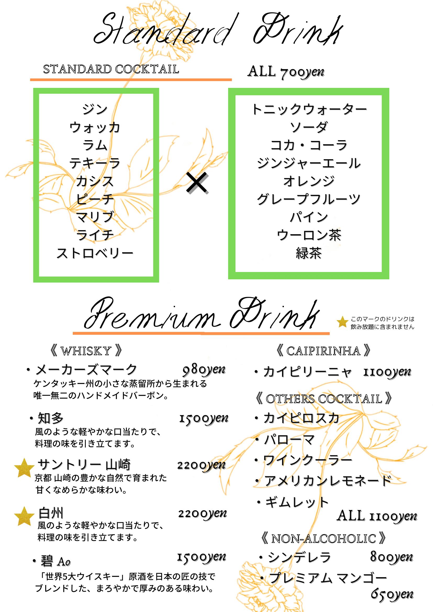 「今週頑張ったからたくさん飲むぞ!」「今日はたくさんお肉を食べるぞ!」など、気分にあわせてメニューをお選びいただけます!