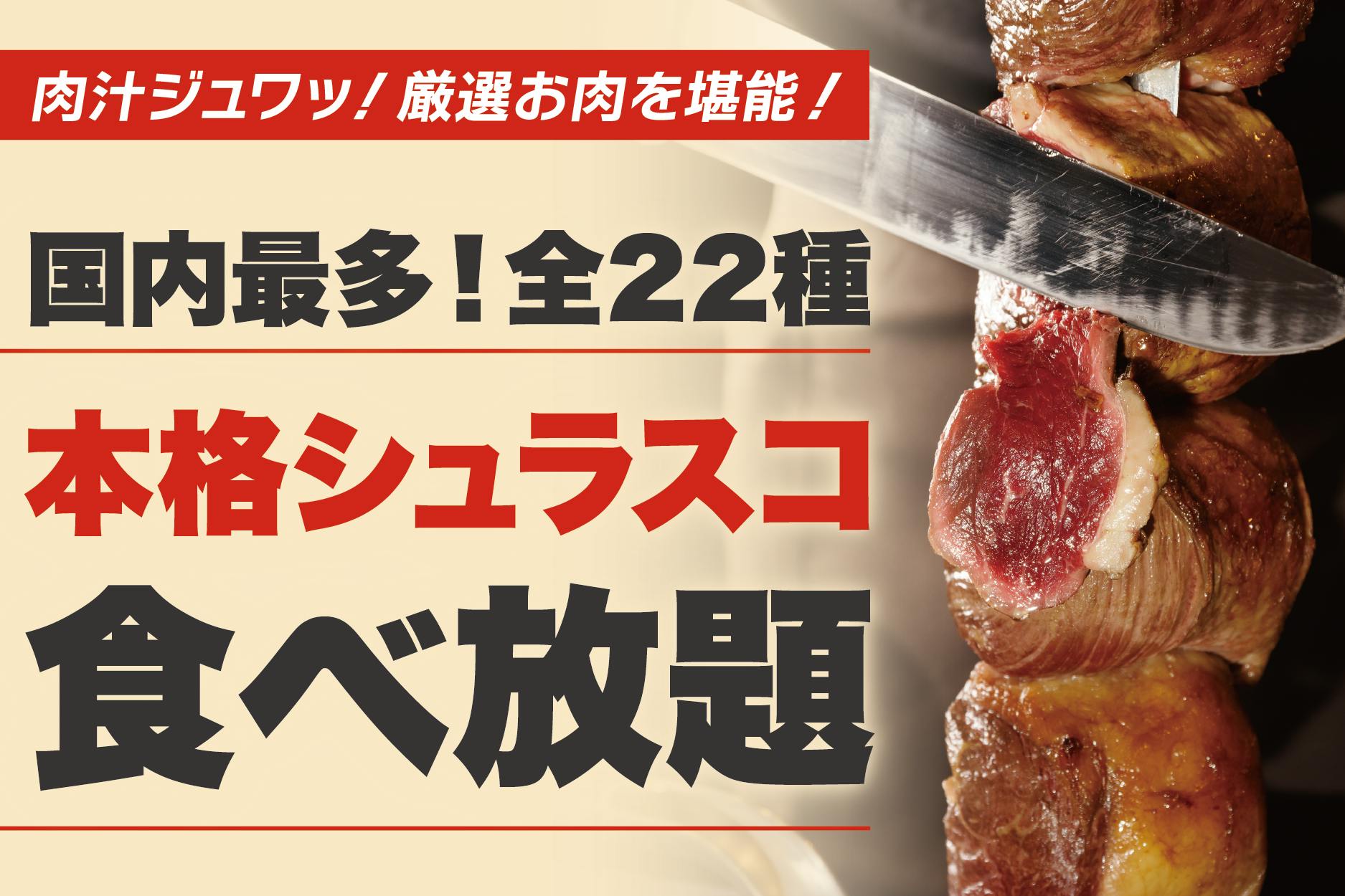 みんなで楽しめる!国内最多22種類の本格シュラスコが食べ放題!