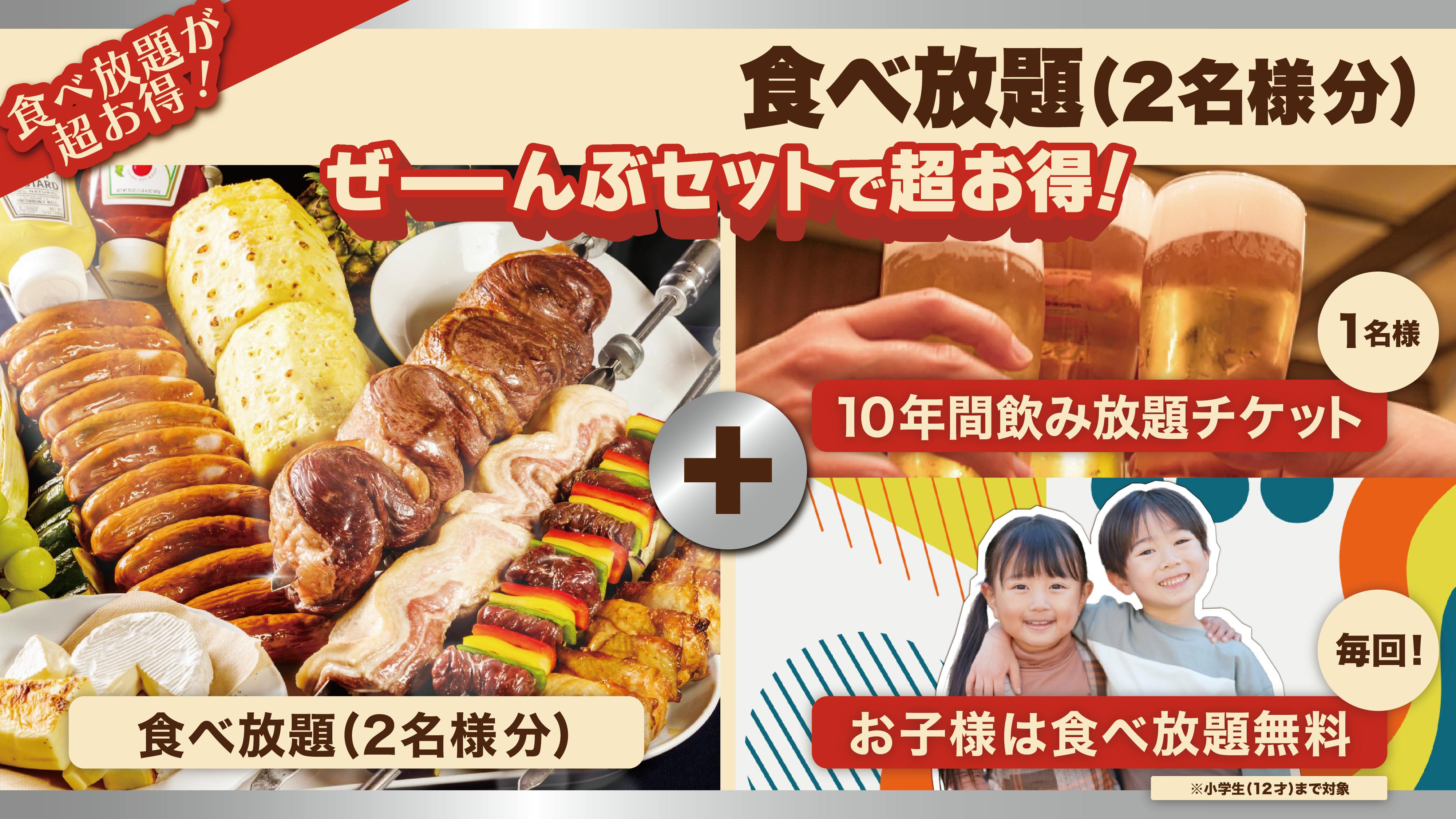 【プロジェクト開始!】家族みんなでシュラスコを楽しもう!お子様無料!10年飲み放題も!