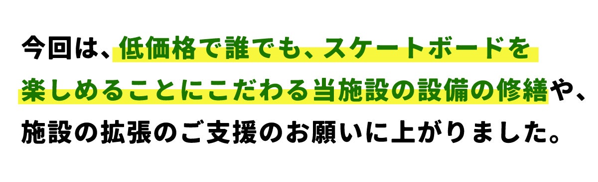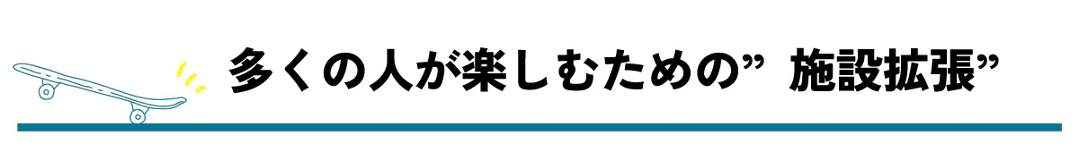 少しでも多くの方がスケートボードを楽しみ、この先何十年も愛される場所として発展させていきます。