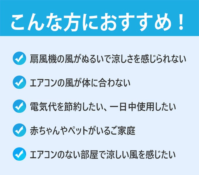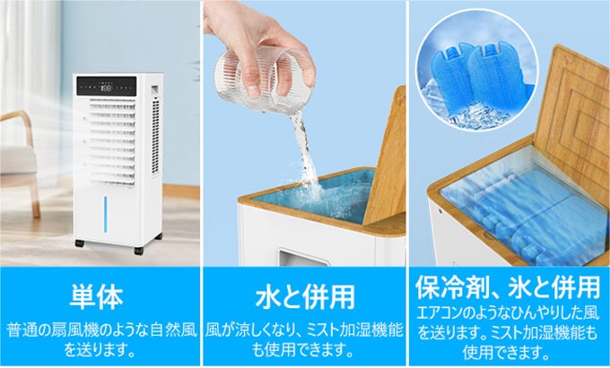 水や保冷剤、氷と併用可能なため、扇風機より涼しい。