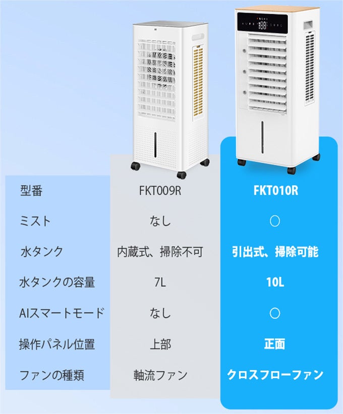 ※ファンの種類について、クロスフローファンの方が軸流ファンよりも送風面積が広いです。