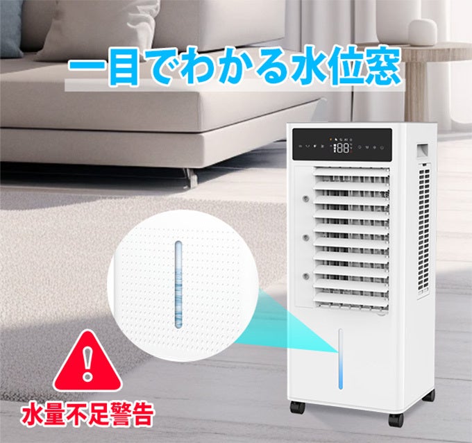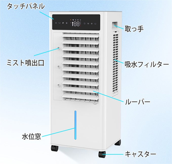 キャスターを押し込んで、水などを入れてコンセントに挿すだけで、涼風を存分にお楽しみいただけます。