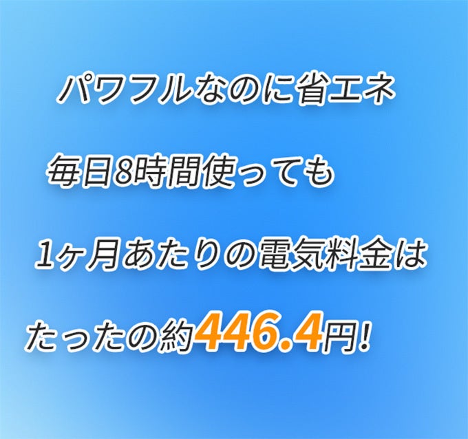 本機の消費電力は最大60W程度で、エアコンに比べて大幅に省エネです!
