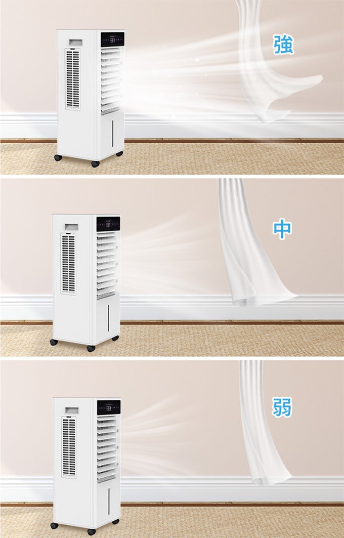 AIスマートモードを除く、各モードで風量を弱、中、強の3三段階に調節することができます。暑い時は強風、涼しい時は弱風に切り替えるなど、使い分けることが可能です。自然な冷風なので体に優しく、お子様からお年寄りまで幅広くお使え頂けます。