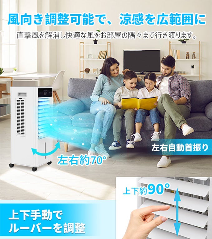ルーバーも上下90度調節できるため、床に座っても、ベッドに横たわっても、全身に涼風を浴びることができます。