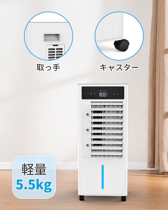 キャスターと取っ手が付いているので、リビングや寝室、キッチン、洗面所など、どこにいても涼しく過ごせます。