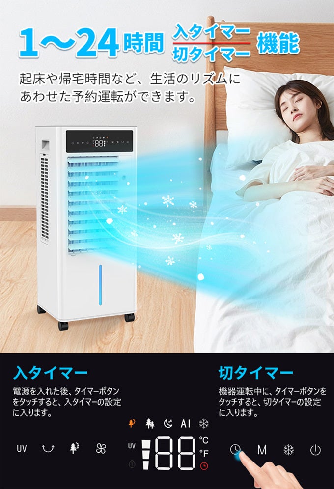 1~24時間(1時間単位で設定可能)の入/切タイマー機能を備えております。