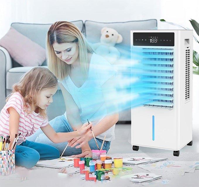 上部タンクに保冷剤または氷を入れると、氷水が気化するのにより多くの熱が必要となるため、送風される空気はより冷たくなります。