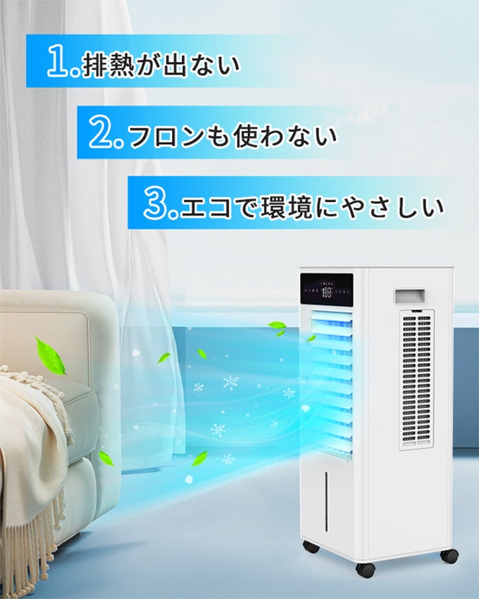 定格出力はわずか60Wで、エアコンより経済的。また、冷風機から吹き出す風はエアコンほど冷たくないので、エアコンの風が苦手な方、ご年配の方、お子様、ペットがいるご家庭に最適です!