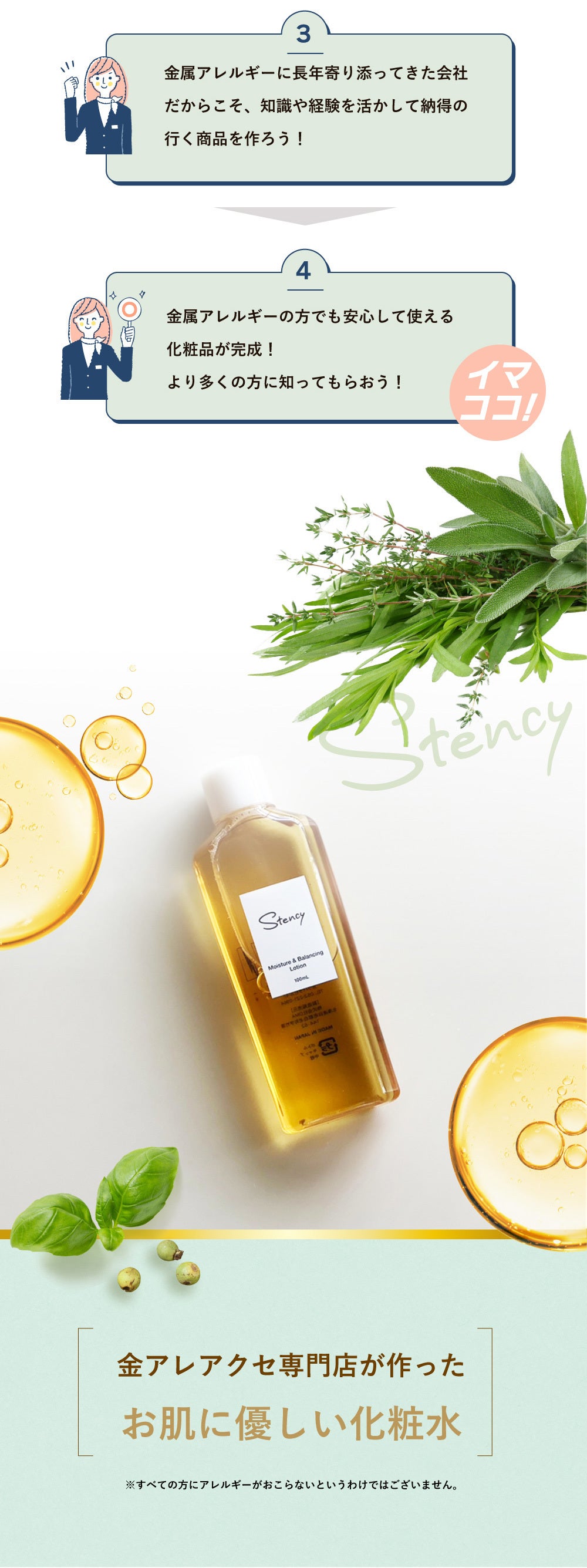世間では珍しい「金属アレルギーの方用化粧水」です。