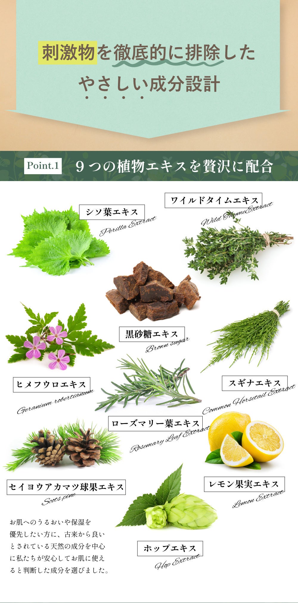 安心してお使いいただける、刺激物を可能な限り排除した自然由来成分の化粧水です。