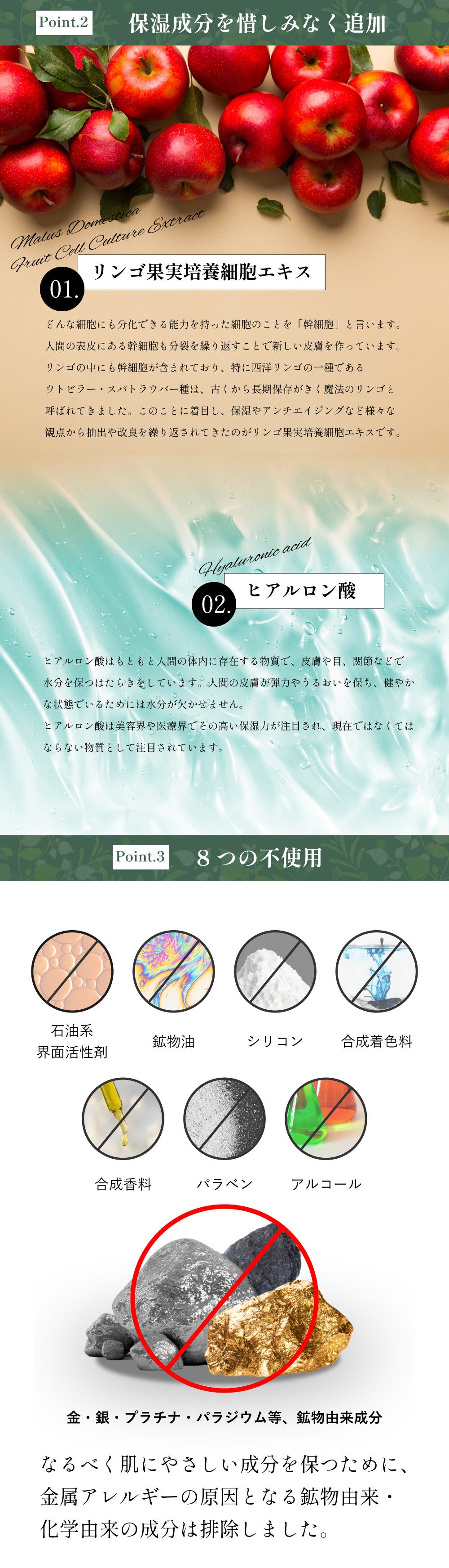 そんなお客様の声にお応えし、金属アレルギーの方も安心して使える化粧品の開発を開始いたしました。