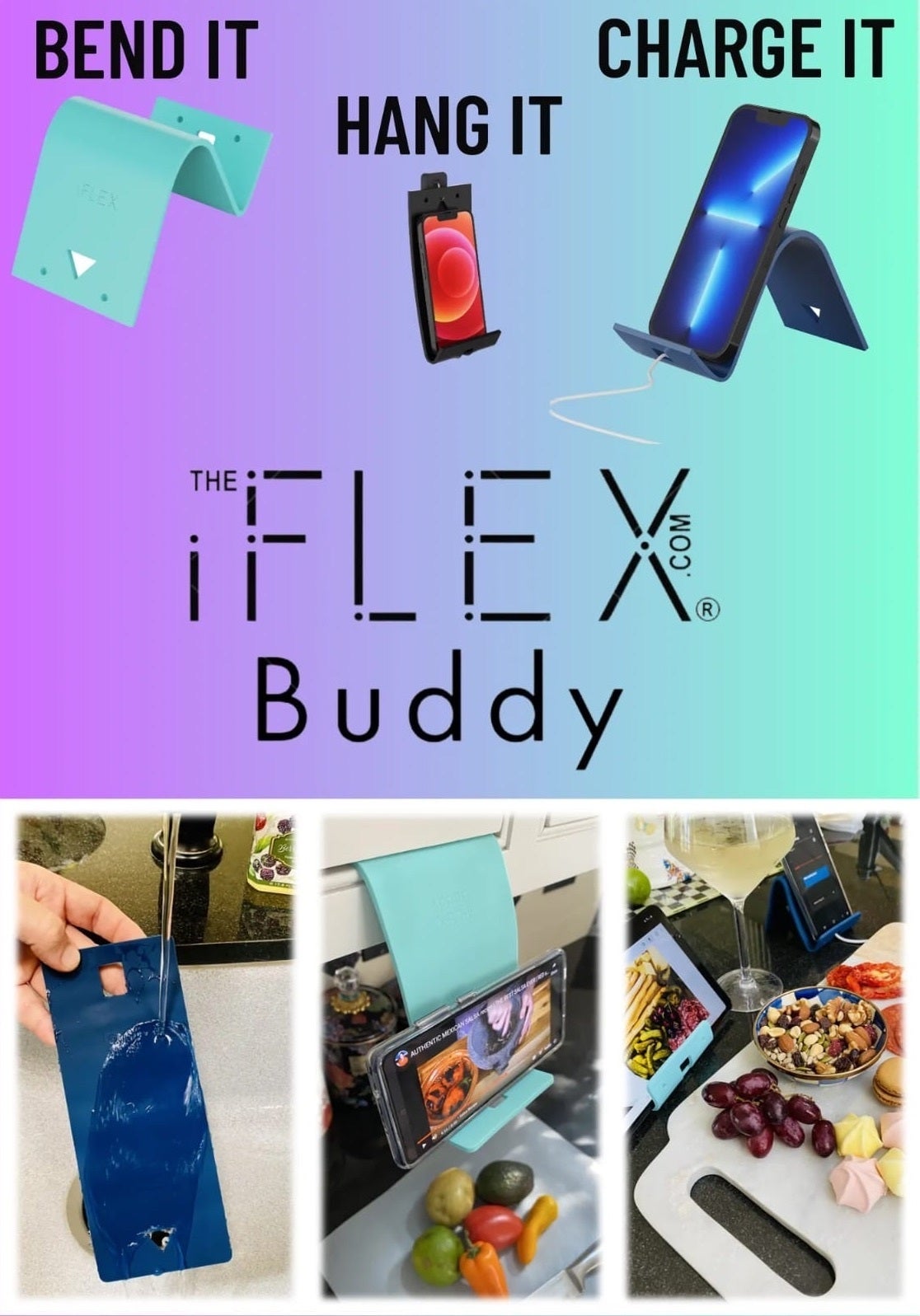 サっと曲げるだけで、様々な角度でスマホやタブレットを固定できます。
