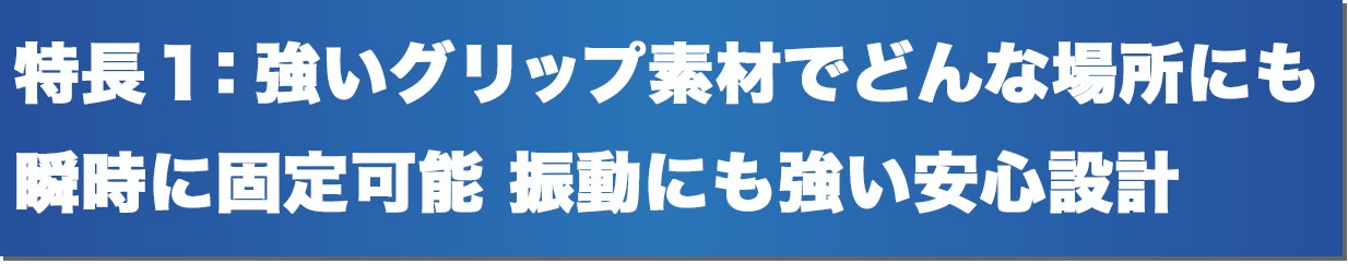 グリップ力にこだわり、十分な強度のグリップ素材を採用。新幹線や飛行機のテーブルに置くだけでなく、キャビネットやデスクの端にぶら下げて使用も可能です。