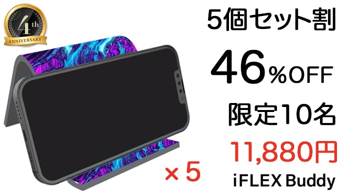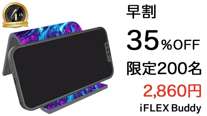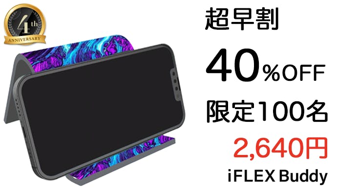 ちょうど1年前に皆様の声から、『iFLEX Buddy』が新登場し、前回叶えられなかった、「表面にほこりがつきやすい」と、「もう少しデザインが欲しい」、iFLEX Buddyブラックを「もっと黒くして欲しい」のご要望にお応えし、商品開発をしました!