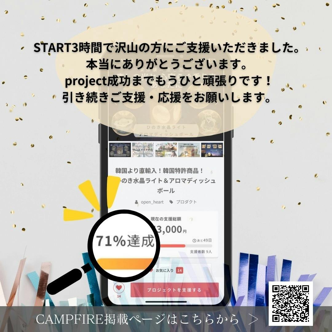 ひのき水晶ライト&アロマディッシュボールに沢山の方からご支援を頂きまして、本当にありがとうございます!素敵な商品をみなさまにお届けできる日がとても楽しみです。