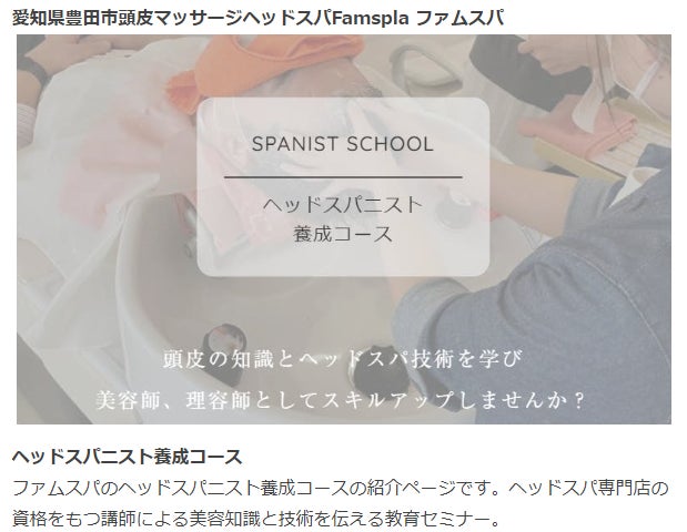 愛知県豊田市で2021年7月にオープンしました『ヘッドスパ専門店FamSpa』です。