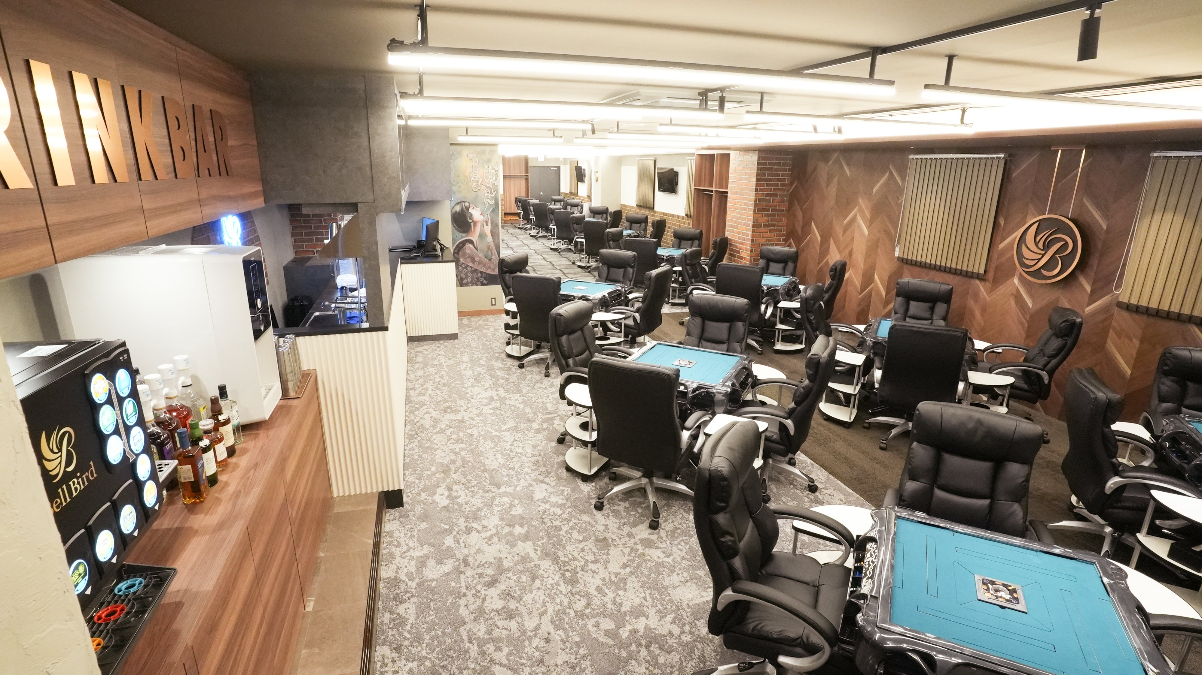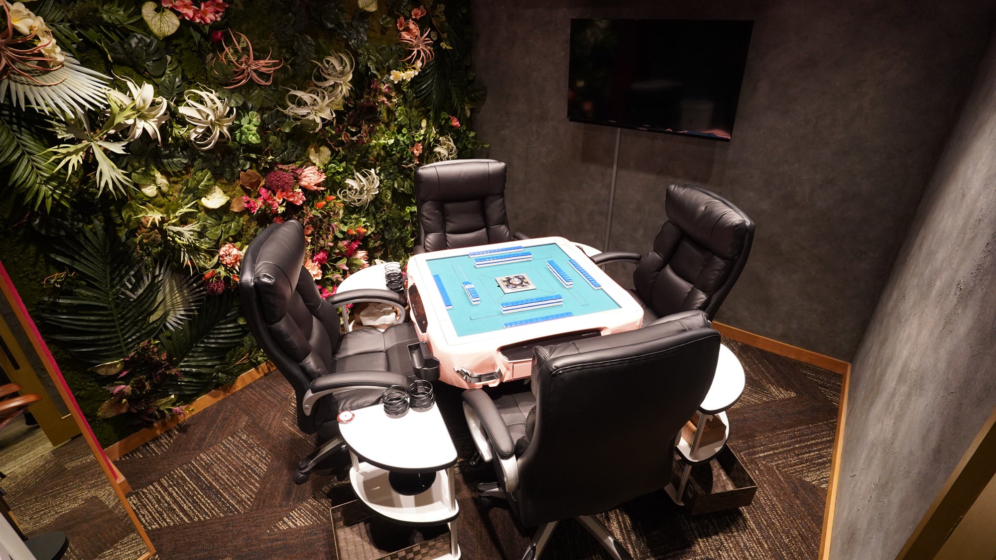 また、女性やお若いお客様でも入店しやすい、従来の麻雀店のイメージとは180度異なる内装にとことんこだわったお店にしたいそんな思いでお店を作っております。