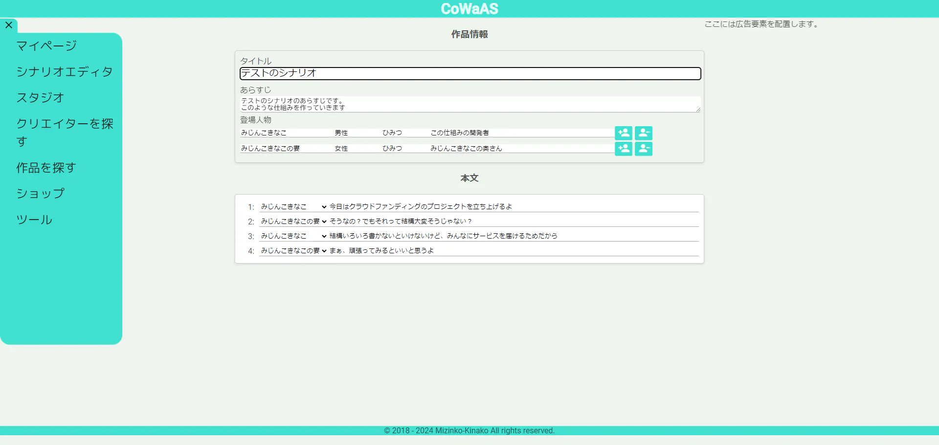 ライターの方は、サービスが提供するエディタツールでシナリオを作成し、シナリオをワンストップ公開、販売をすることができます。