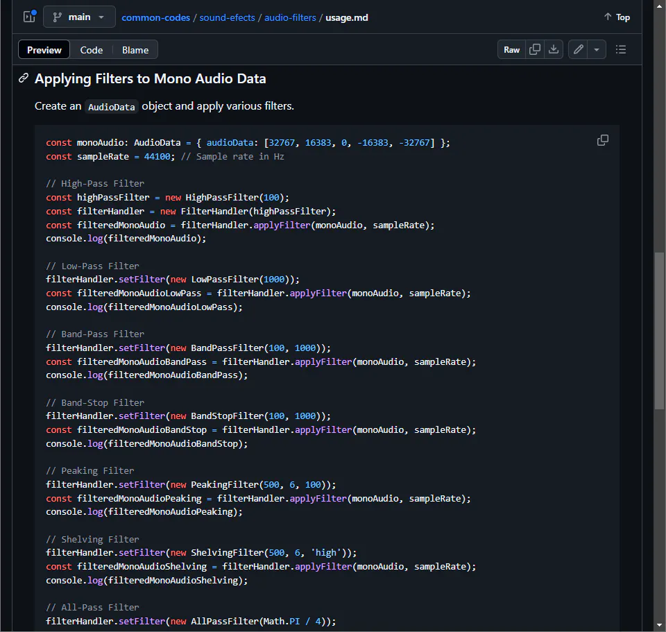 クラスの設計を工夫して、一つの音声に連続して複数のフィルタをかけるなどかなり高度な加工ができます。