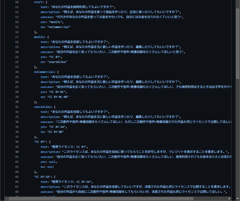 GitHubで公開しているライセンスセレクタのコードの一部。