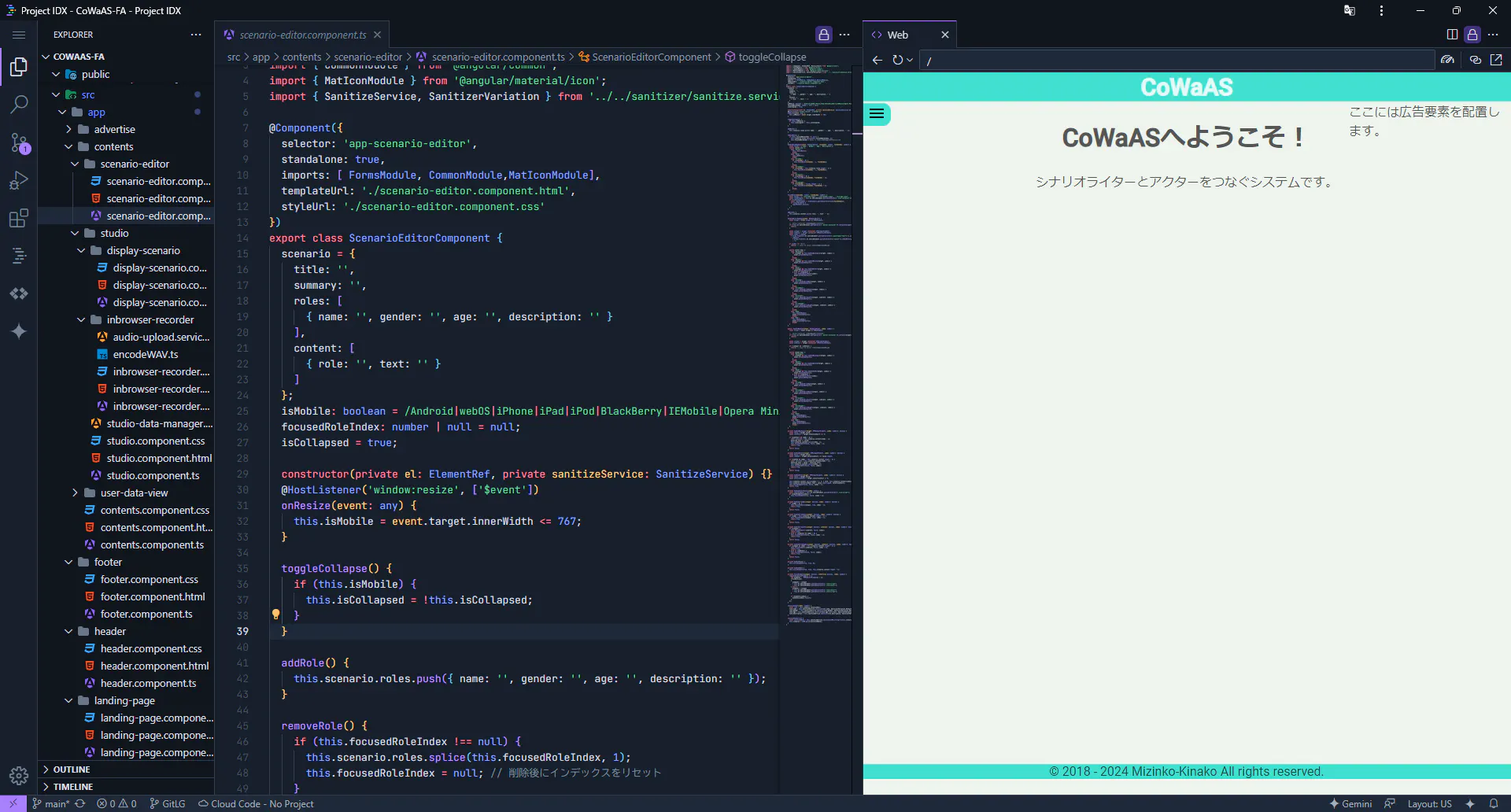 開発している画面の様子。