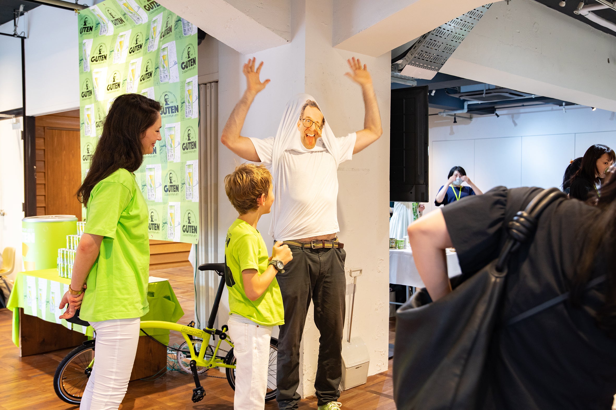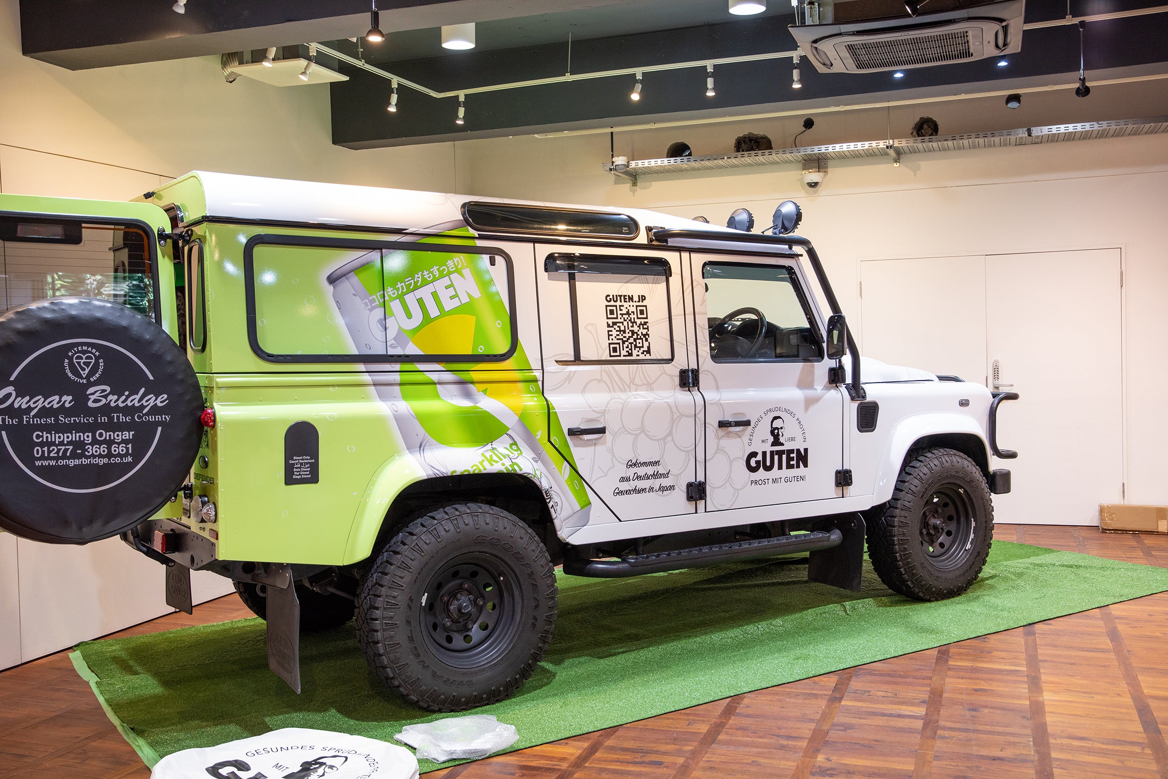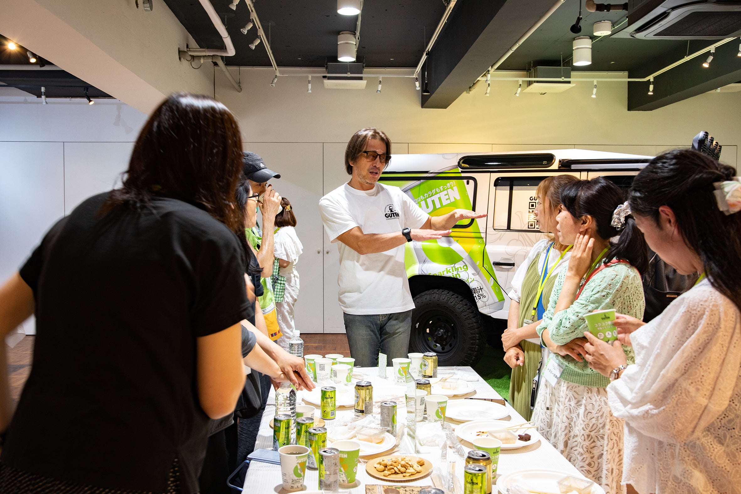 会場には「GUTEN」のシンボルカラーでラッピングされたブランドカーを展示しました。