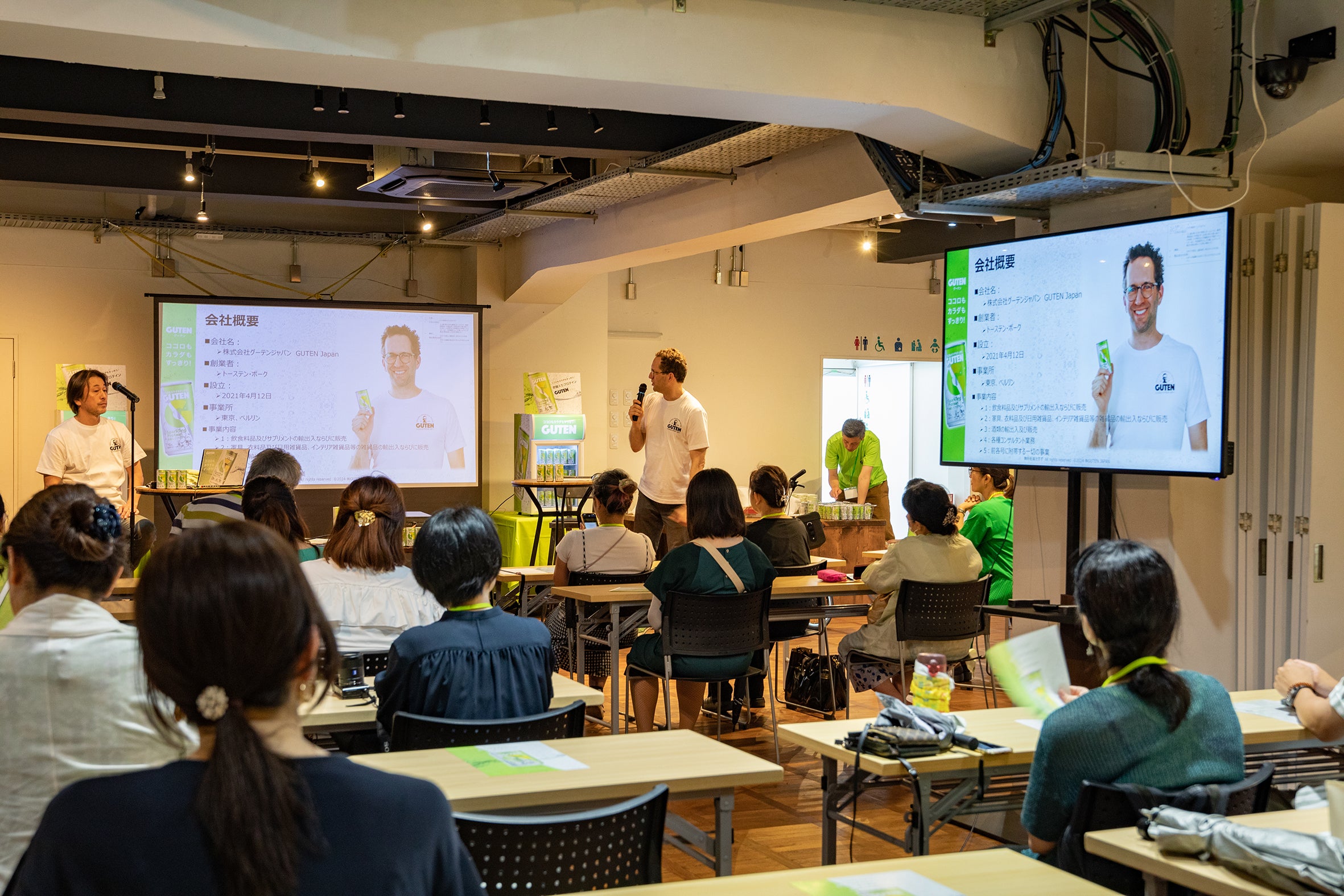 総勢60名のゲストの方々をお招きし、「GUTEN」のご紹介から創業者トーステンボークによる開発理由、「GUTEN」の今後の展望などをお話しさせていただき、ご来場いただいた皆様に「GUTEN」を試飲いただきました。