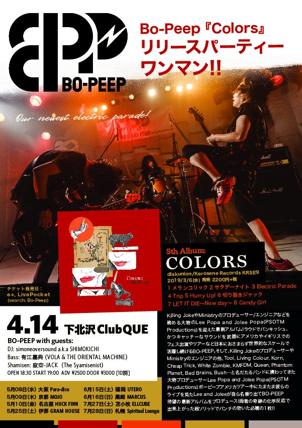 2019/04/12 12:384月14日 日曜日 下北沢culb QUEにてリリースワンマンを開催します!!是非ともお越しいただけると嬉しいです!!・前売りチケット購入リンクhttps://t.livepocket.jp/e/que20190414・バンドのホームぺージで予約(当日受付に前売りチケット予約でお名前をお伝えください。)https://bo-peep3.com/reservations/ もっと見る