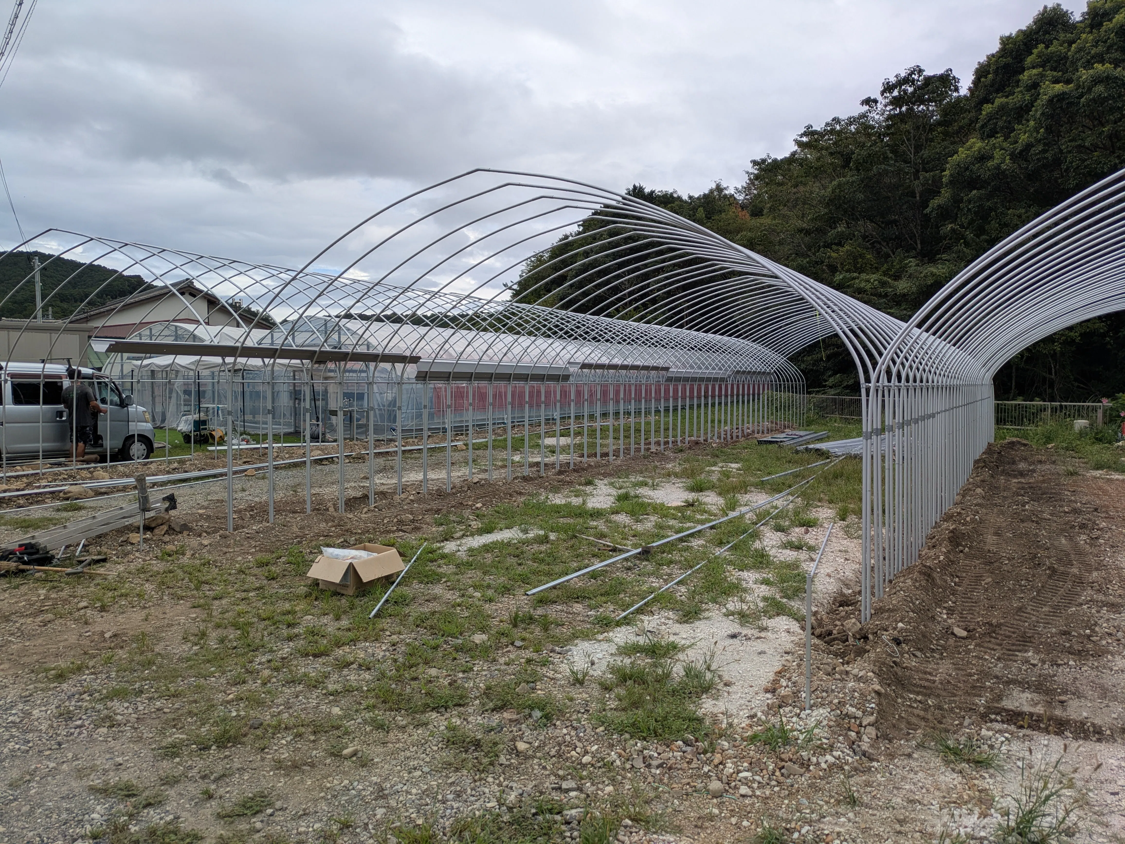さて、やっと新しいビニールハウスの枠が出来てきました。