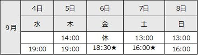 9月7日 13:00/16:00★