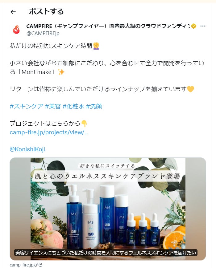 CAMPFIREの公式【X】で、me in me をご紹介いただきました!