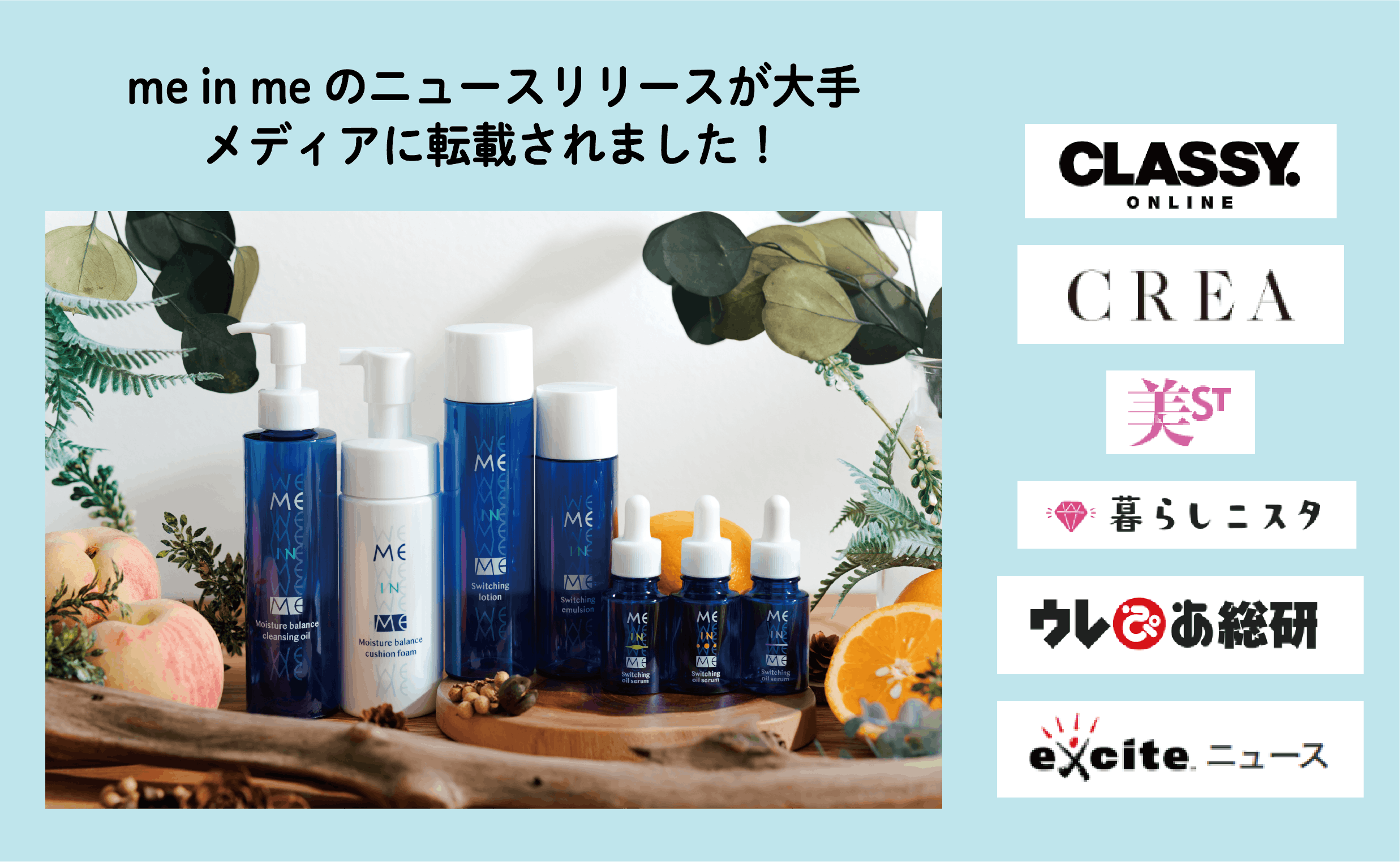 大手女性誌メディアや情報メディアで、me in me のニュースリリースをご紹介いただきました。