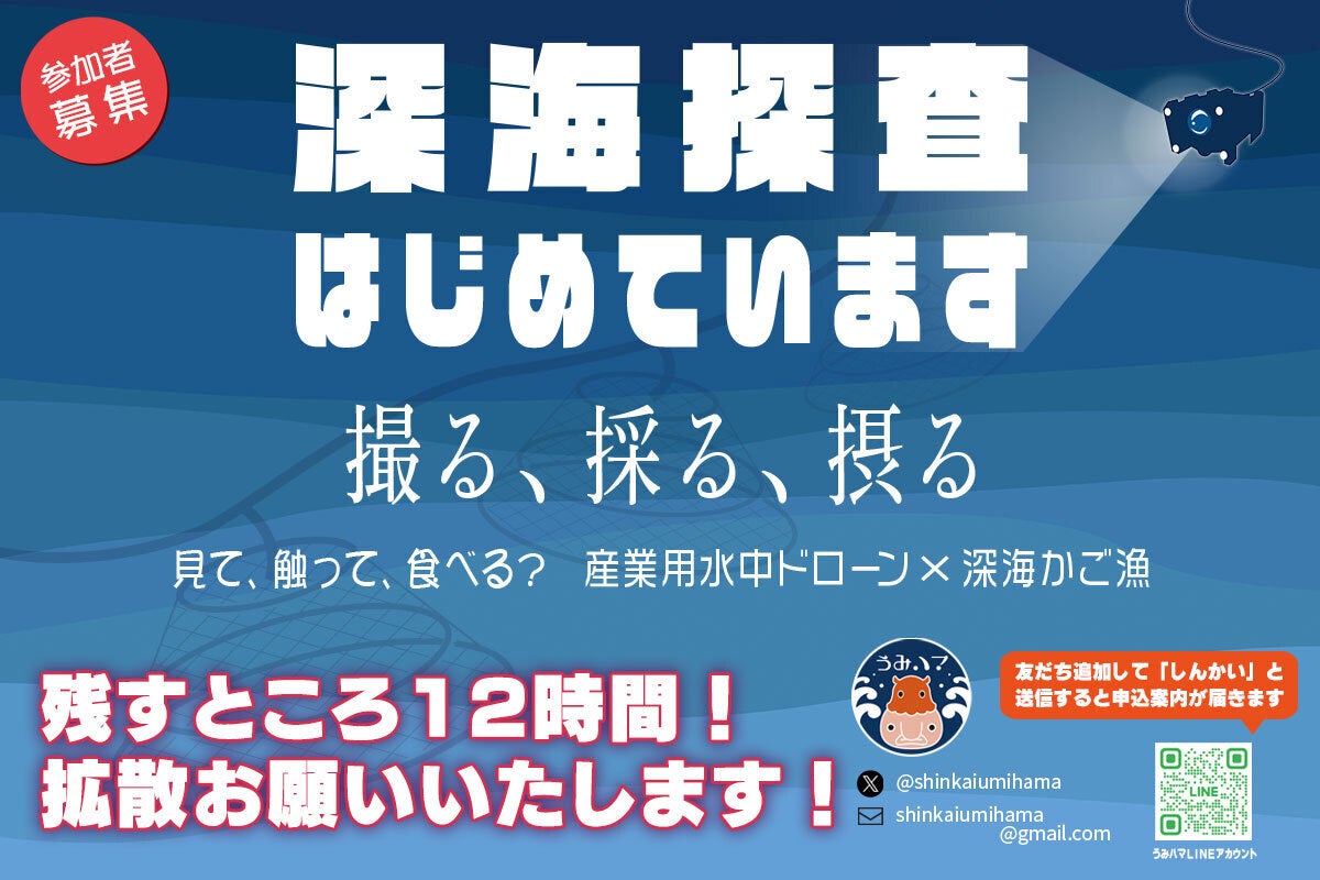 超激レア深海生物に会うために開発された最新水中ドローン『TripodFinder2』で、水深1,000mの深海を撮影調査するイベントを実施します。