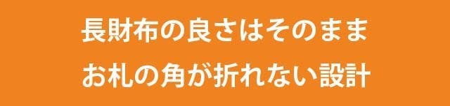 ①小さい長財布の弱点を克服。コンパクト化とお札の取り出しやすさが両立。角が折れる心配もない。