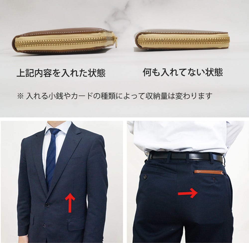これだけ入れた財布をジャケットや後ろポケットに入れても目立ちません。