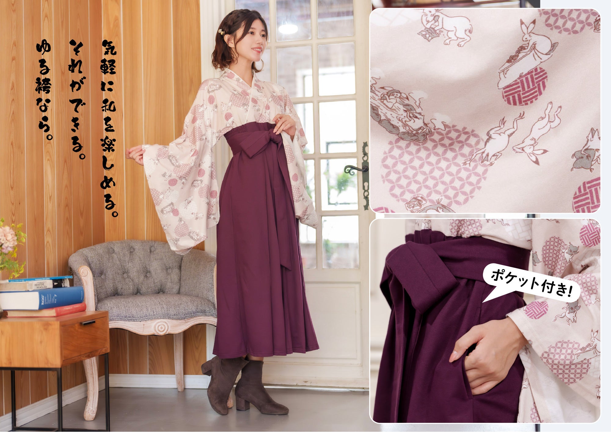 和服が好きな方、普段和服を着る事がない方、または今まで着る機会がなかった方も、「ゆる袴」でおうち時間を気軽に楽しく過ごしませんか。たくさんの方に愛用してもらえる「ゆる袴」になることを目指します!