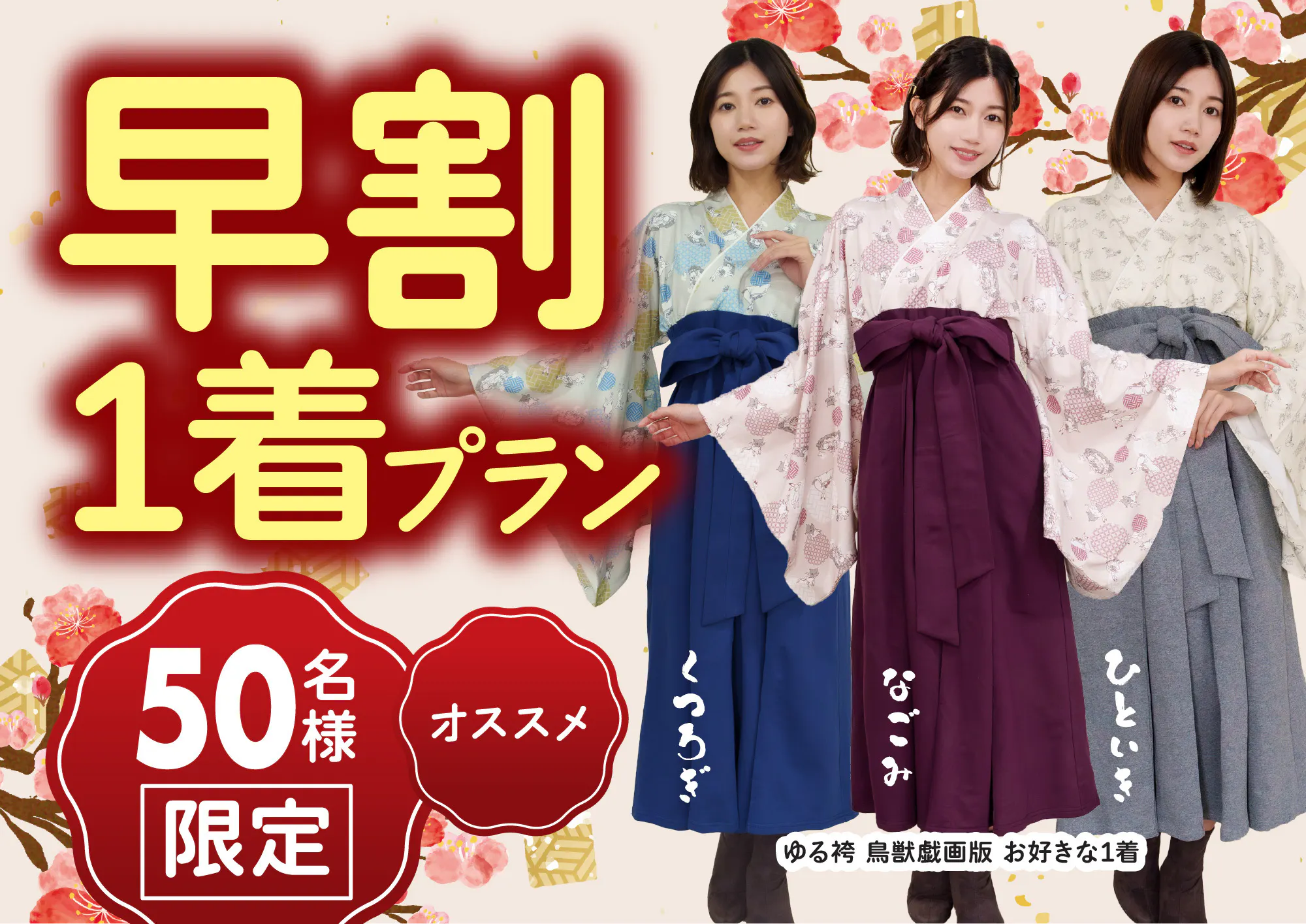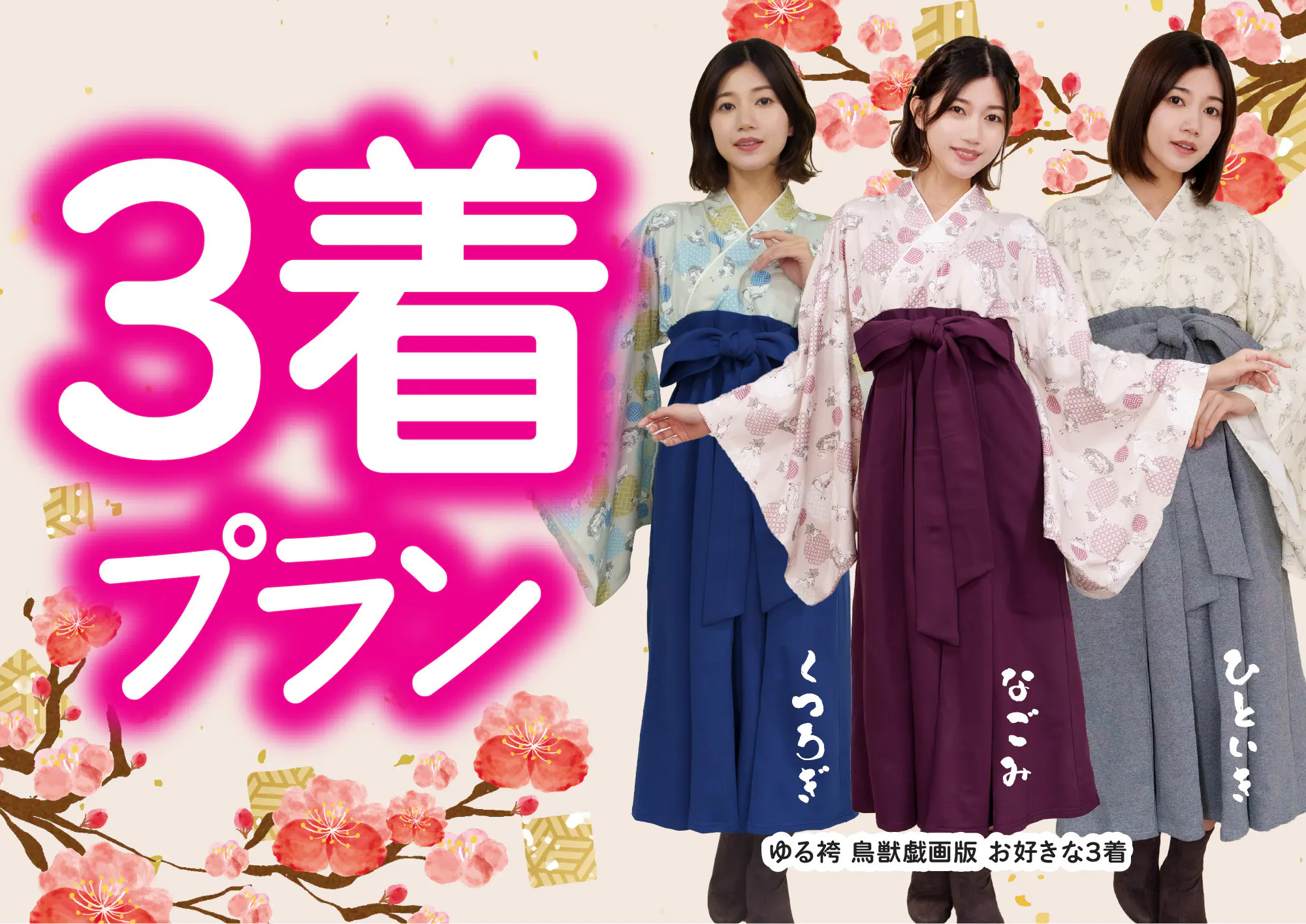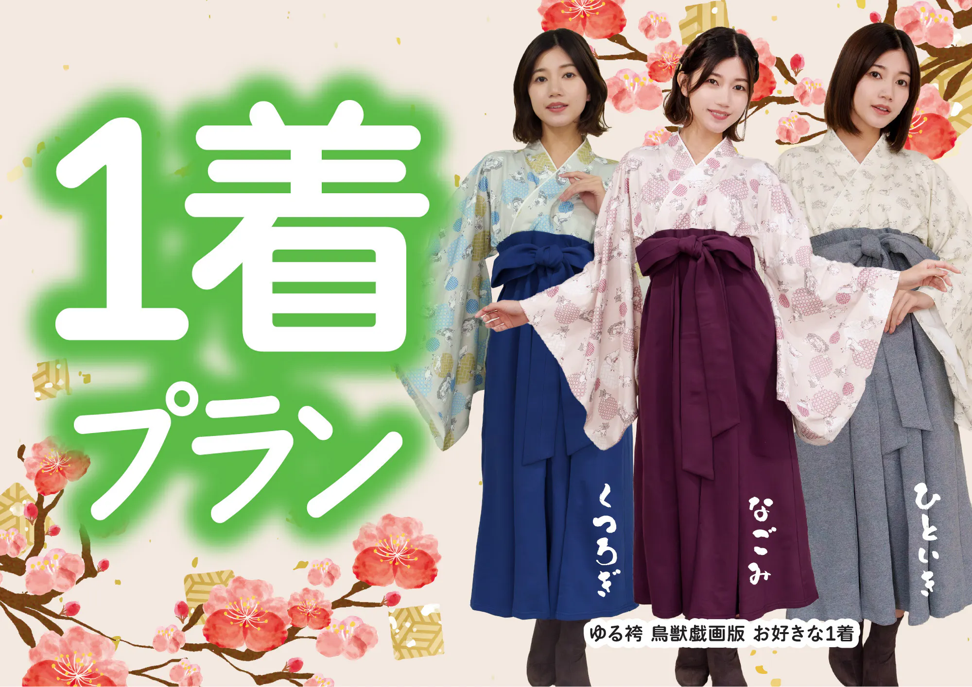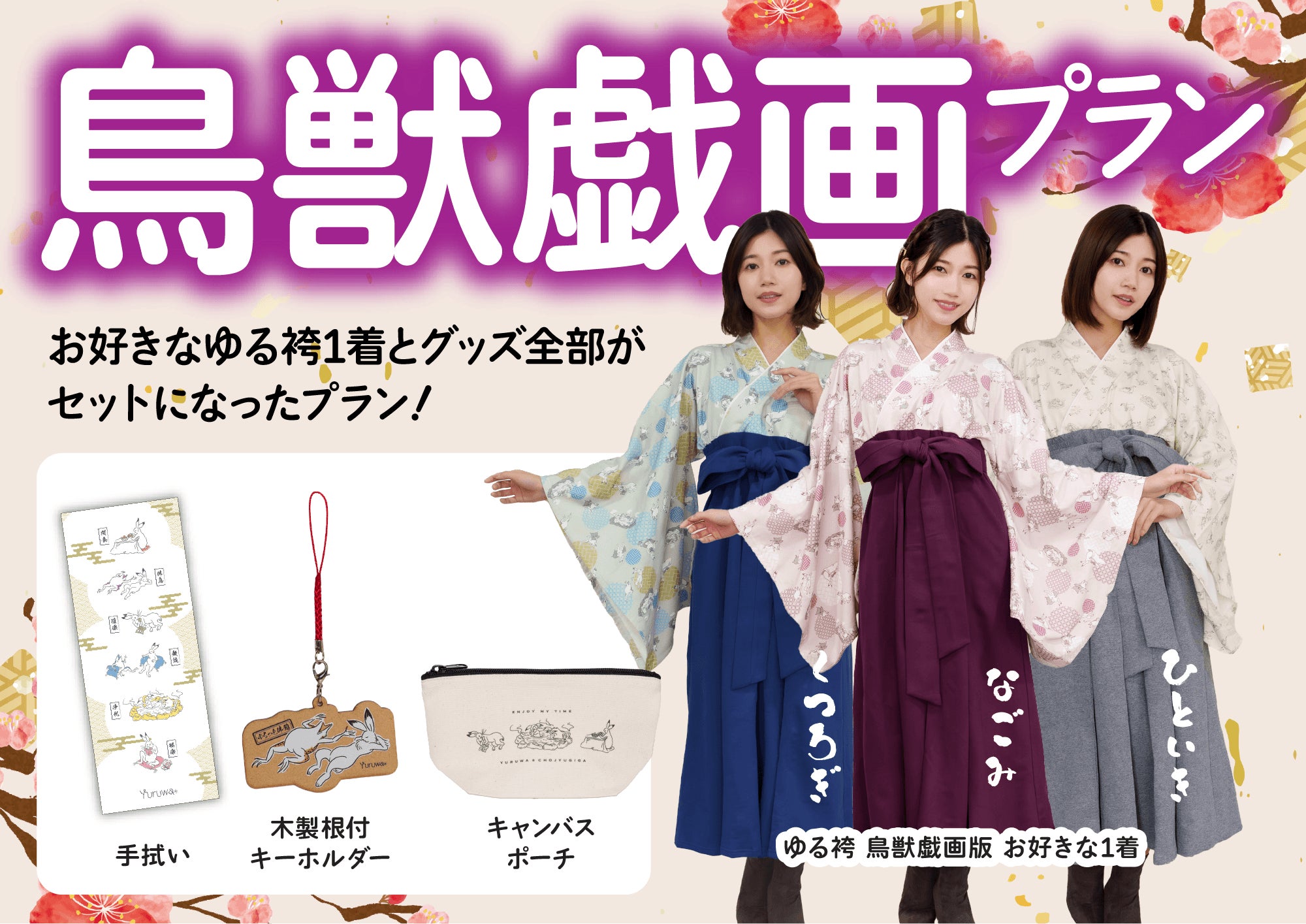 ゆる袴1着とYuruwa鳥獣戯画のグッズがセットになったプランです!