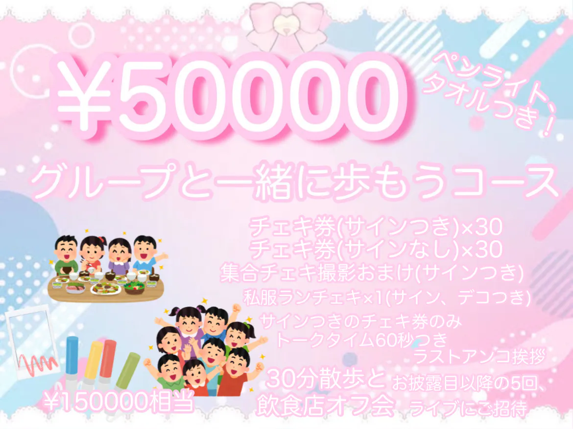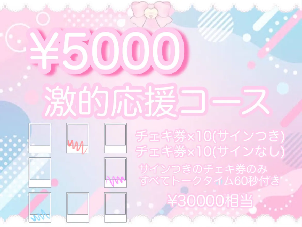 ・お披露目ライブ当日、私服のランダムメンバーチェキ1枚(あらかじめお家でサイン+デコレーション付き)