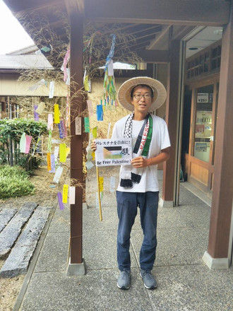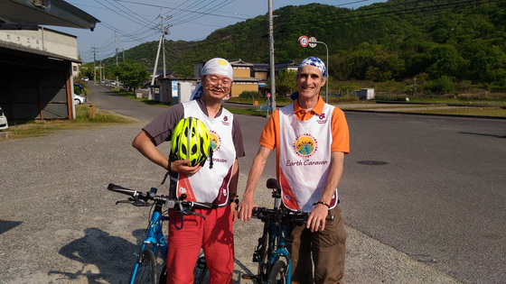 2017年 ピースサイクリング。印象的な出会い。 私は昨年のピースサイクリングに参加した大森未久と申します。 ピースサイクリングの中でユダヤ教徒のカナダ人、ボブさんとの出会いは印象深いものでした。中東パレスチナの支援を目的にしているピースサイクリングをユダヤ教徒のボブさんと一緒に走る? 最初は戸惑いを覚えました。 ボブさんは日本語が不得意、私は英語が苦手、ボブさんはベジタリアン、私はお肉大好きの2人が翻訳アプリやボディランゲージでなんとかコミニュケーションを取りながら進めて行くピースサイクリング。 平和の火を燈し、一緒に走る 私はピースサイクリングに参加するまでは「平和の火」の存在を知りませんでした。 毎日「平和の火」をカイロに燈しボブさんと一緒にピースサイクリングで走っている中で、山本達雄さんの遺された「いかなる事があろうとも戦争だけはせんという考えだけは、皆さんに持ってもらい、あんたたちの子どもから孫から伝えてもらいたい」この想いに賛同し、パレスチナ支援活動に参加するユダヤ教徒もいる事を認識する事ができました。 今年は、パレスチナの平和活動家サミー・アワド氏とピースサイクリングができる事を楽しみにしています。皆さんも、アースキャラバン会場で「平和の火」に触れて頂き一緒に平和について考えて頂けたら嬉しいです。