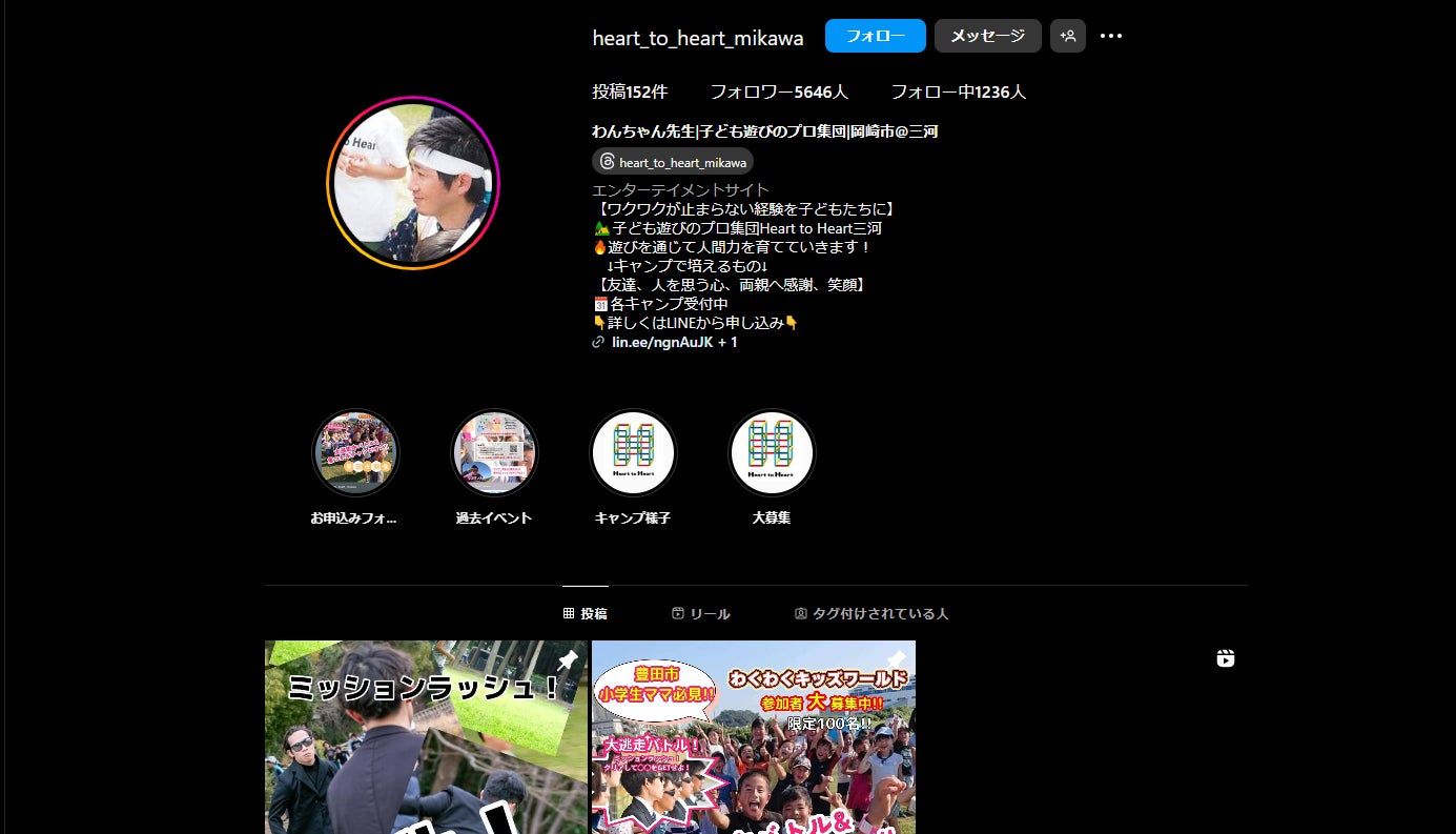Heart to Heartは2014年より、愛知県三河地区・静岡にて子ども向けにイベント、キャンプ、スポーツを行って参りました。