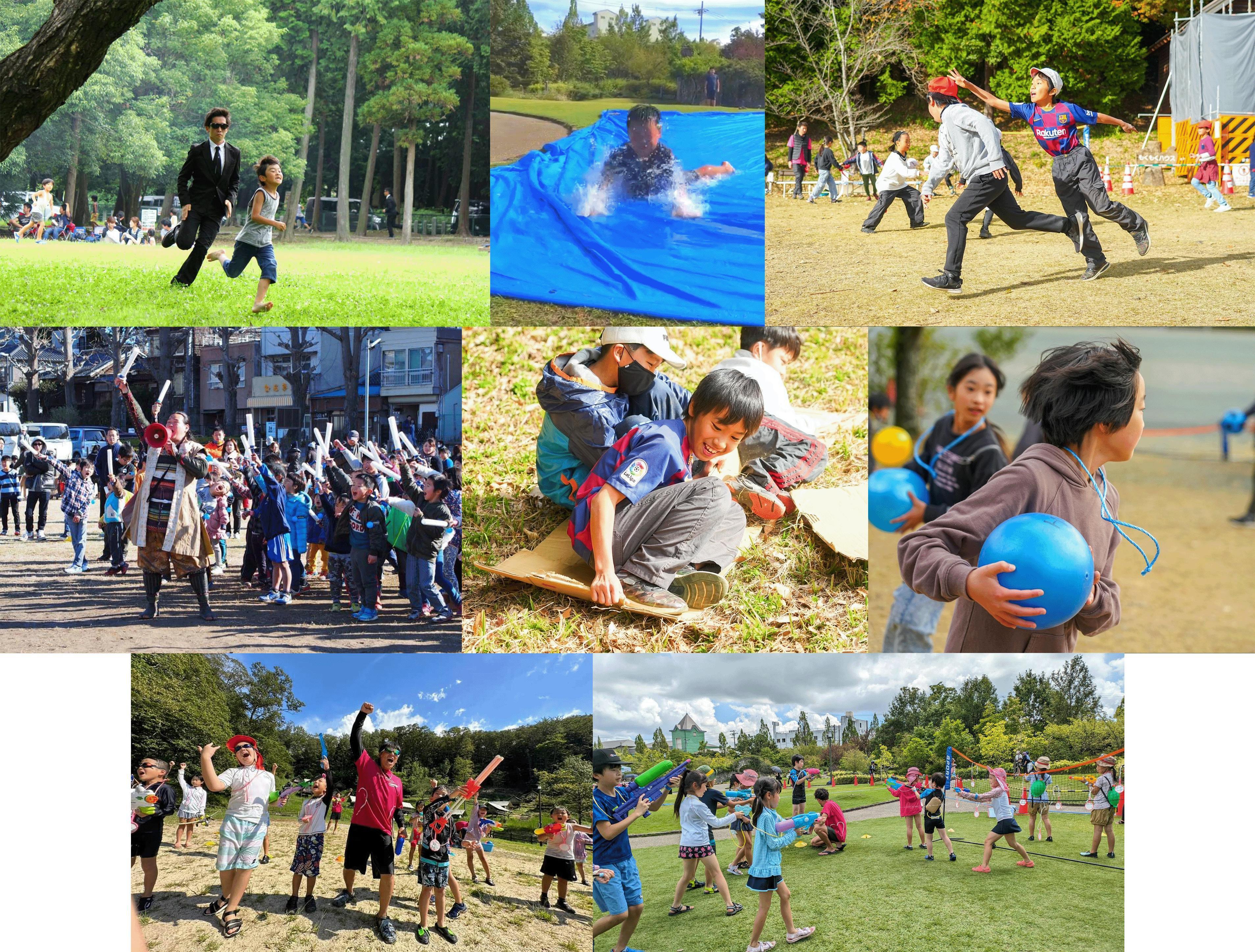 集団遊び・常設遊び、30以上のコンテンツを用意して、子どもたちが自分らしく好きを見つけられるイベントです。季節ごとの自然を生かして、春夏秋冬の年4回開催しています。