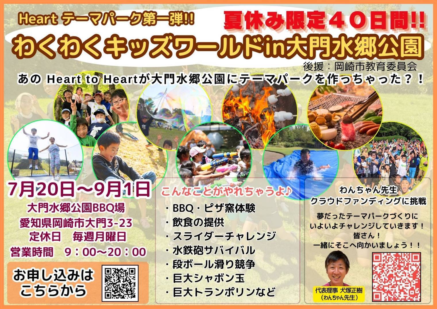 2024/07/12 20:077月20日(土)Heart to Heartの原点!聖地!!【大門水郷公園管理記念イベント】①わくわくキッズキャンプin水郷公園(子どもだけの参加)②水郷公園施設管理スタート(家族でバーベキューもできる!)※バーベキュー10炉増設、テントエリア開設、トレーラーハウス飲食販売、水遊び開場開設いよいよ来週末が本番です!!街中でありながら自然を満喫できるロケーションとHeart to Heartの体験型アクティビティをふんだんに取り入れて、人が人を楽しませるスパイスを織り交ぜれば、楽しめること間違いなし!!皆さん(^^)ご家族でも子どもだけでもHeartの聖地!水郷公園を思いっきり満喫して下さいね〜!!※クラウドファンディングからのお申し込みもお得ですのでぜひ閲覧を! もっと見る