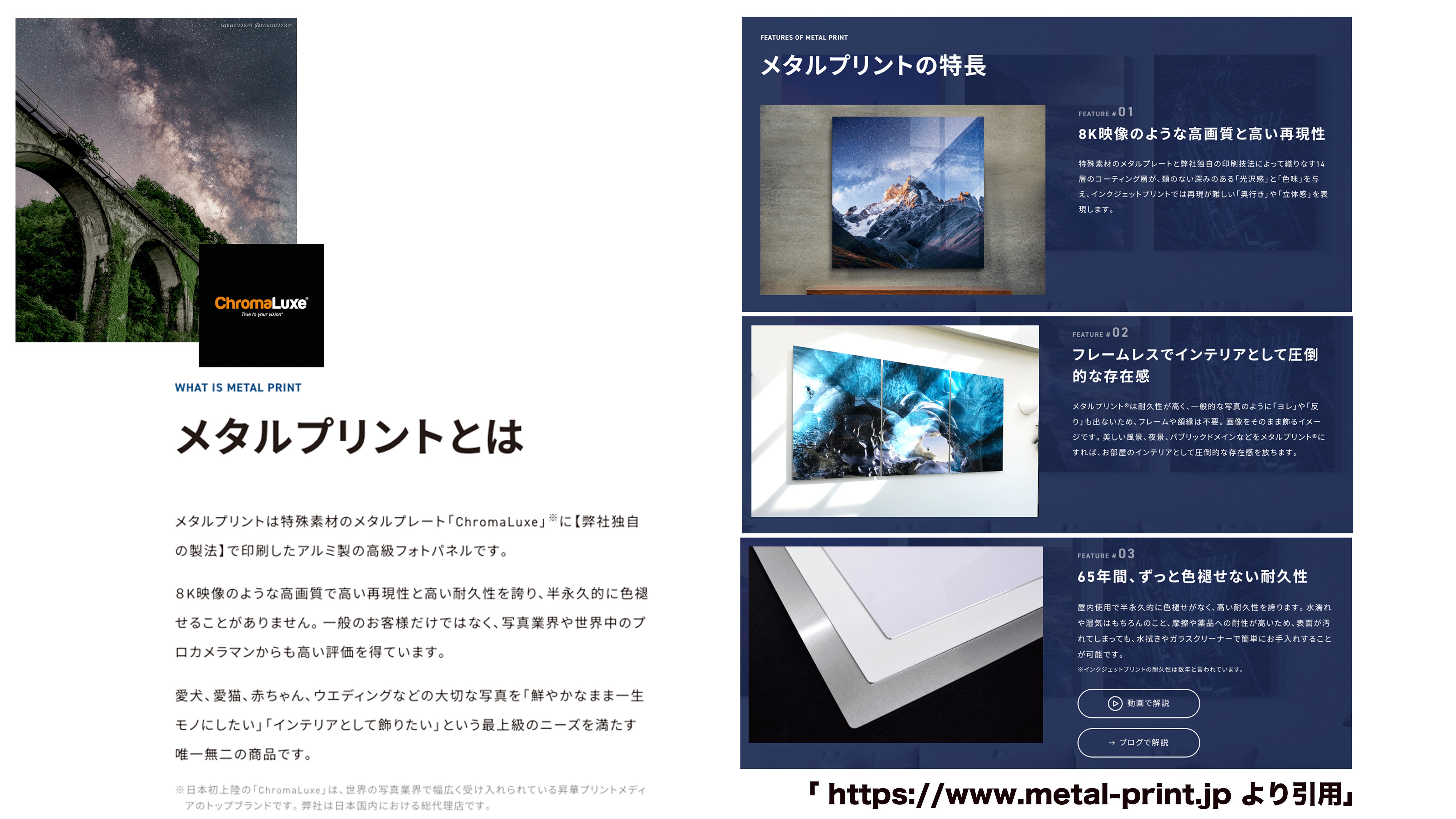 メタルプリントより引用しております。商品の詳細は、ホームページをご覧ください。