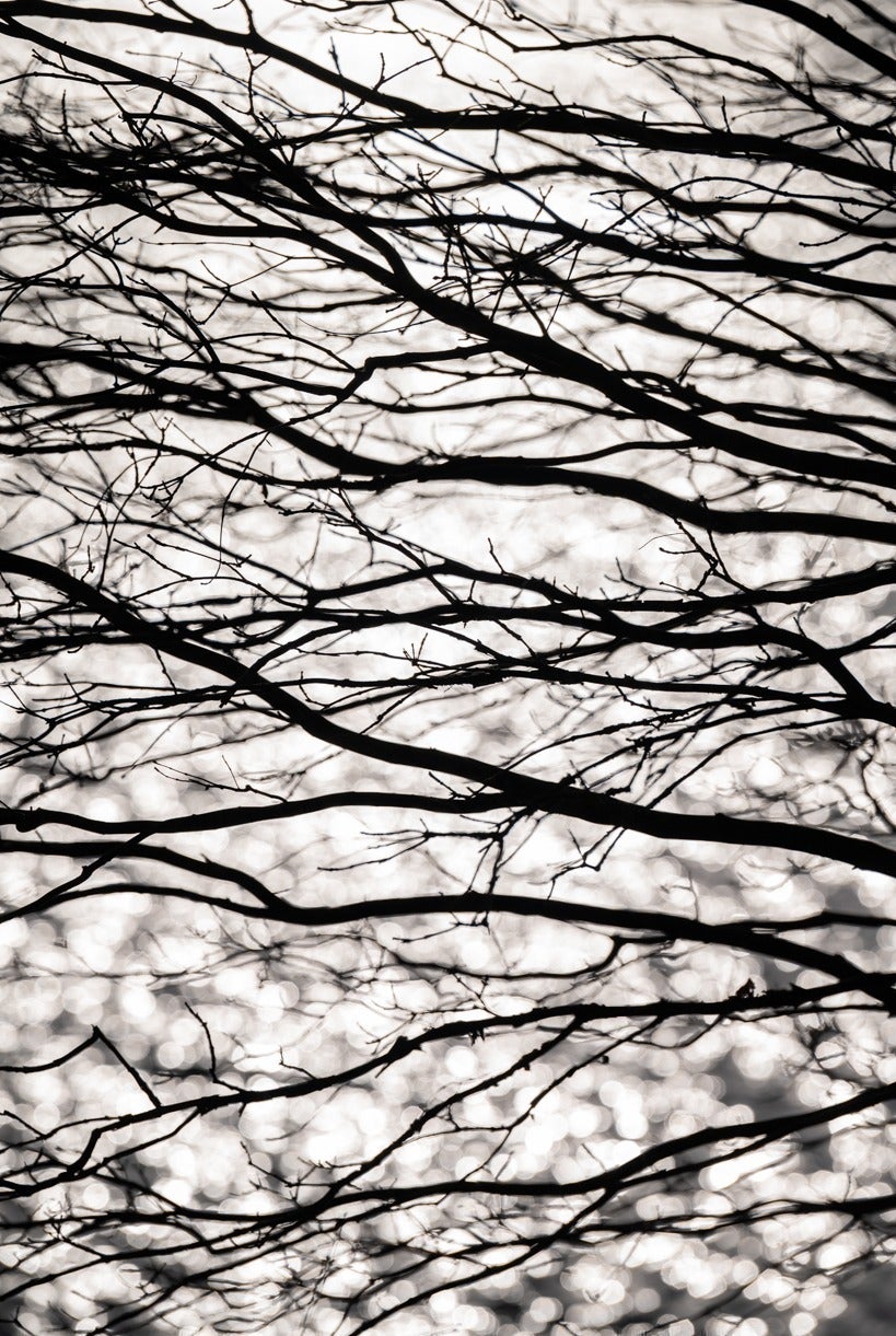 煌めく水面を背にした枯れた樹々は、生命の営みと歴史の証人。その枝は、風雨・風雪に耐え、季節の変化に従って姿を変える。葉を失った枝は、枯れたように見えるが、その根は地中深くに張り巡らされ地球の生命力を支えている。枯れた樹々は、時には過酷な条件に耐えることを強いられるが、その存在は依然として力強く、美しく、哀愁を帯びている。彼らは、生と死、再生と終末の境界線を象徴し、自然の営みの一部として尊重されるべき存在であり、その幹には数々の物語が刻まれ、その枝には、風景の変遷が映し出されている。
