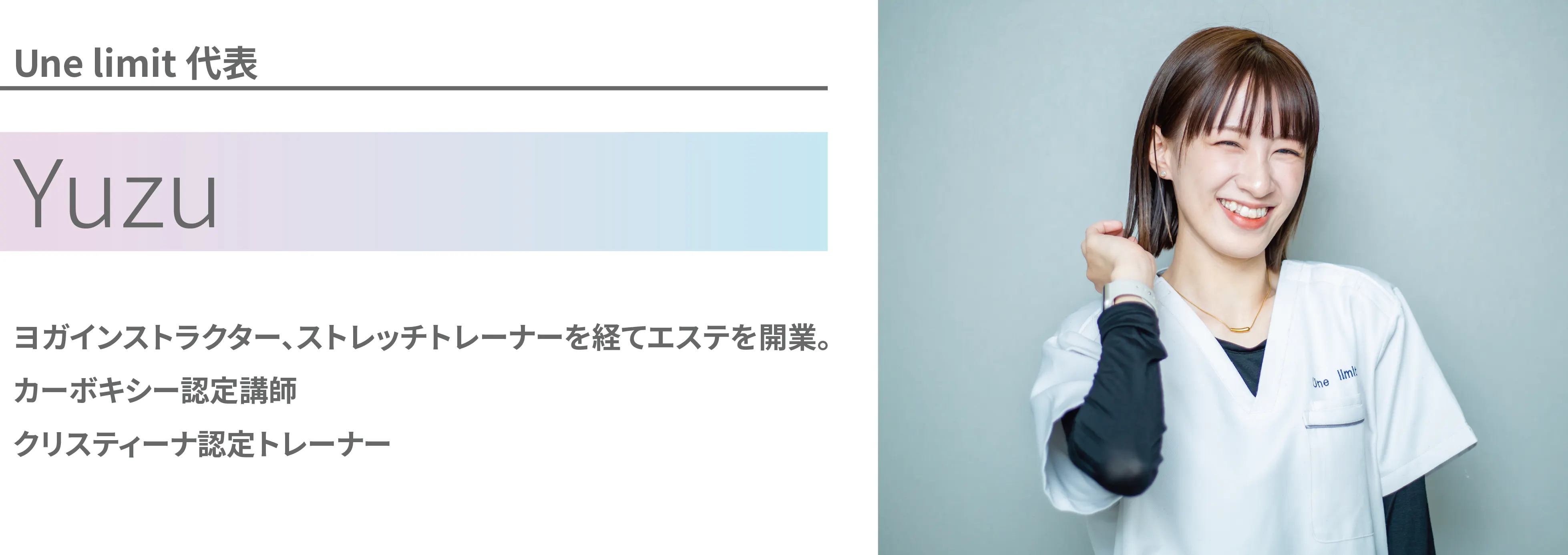 都内を中心に肌質改善サロン「Une limit(アンリミット)」を経営しておりますYUZU(ゆず)と申します。