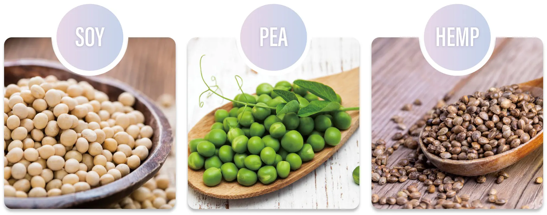 ソイ・ヘンプ・ピーの3種のブレンドタンパク質