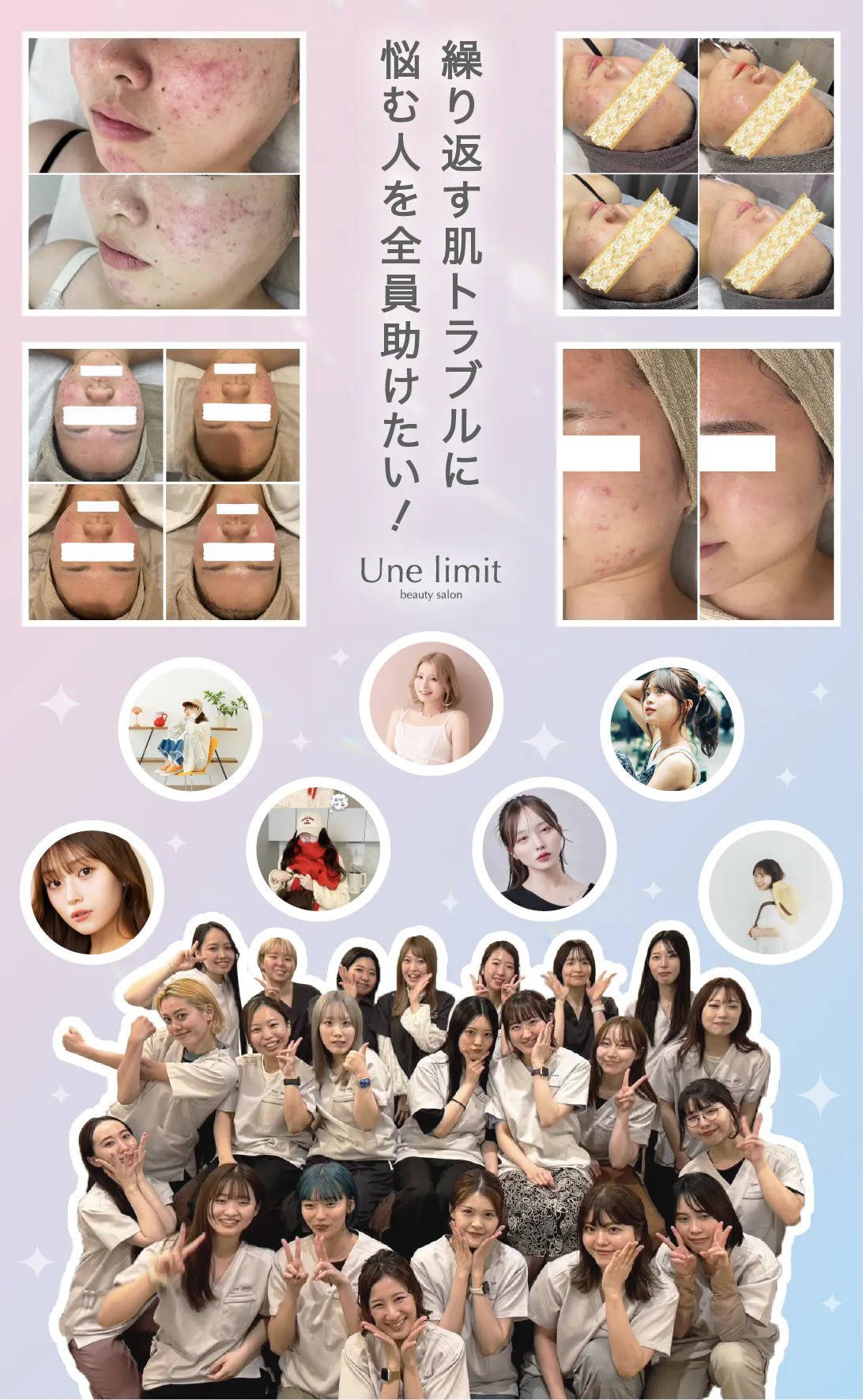 肌質改善サロン「Une limit(アンリミット)」とは、従来のエステと違い、ご褒美や特別な時に行くサロンではなく、今までずっと悩んできたニキビや敏感肌など様々なお肌のお悩みを根本から改善することに特化したサロンです。