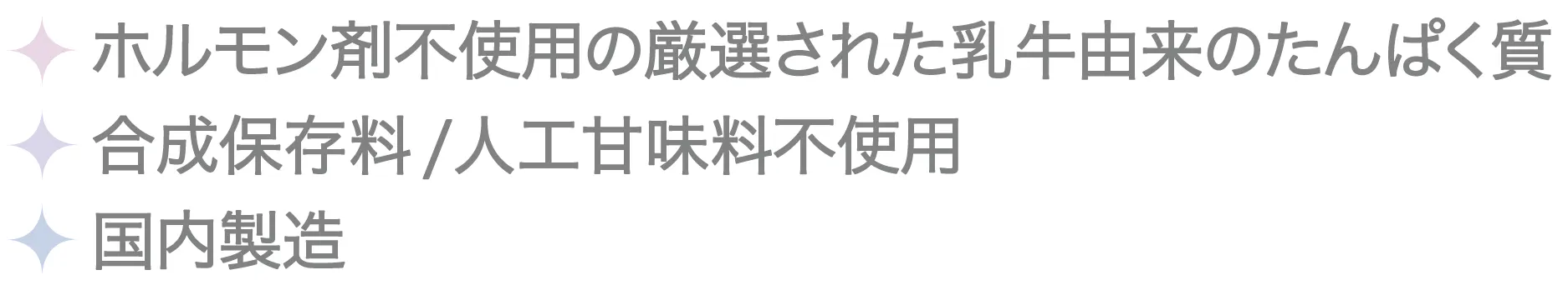 それぞれのプロテインの特徴を活かし、消化吸収速度、満腹感、アミノ酸スコアなどの最適化を実現!
